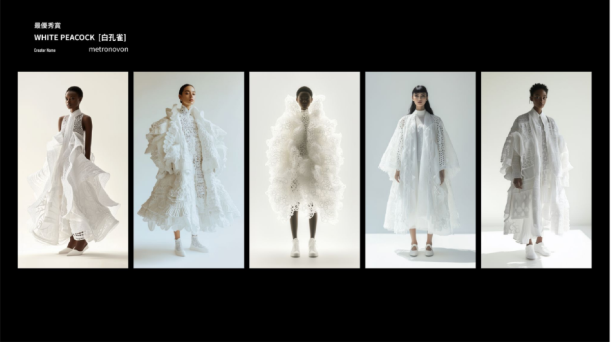 TOKYO AI Fashion Week 2025 S/Sで最優秀賞となった孔雀をモチーフにしたデザイン
