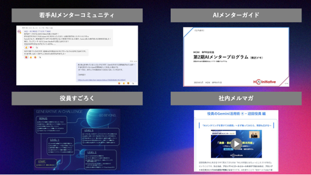 AI逆メンタリング制度の取り組みを通じて見えてきたのは、AIが人の仕事を奪う存在ではなく、むしろ人と人との距離を大きく縮める役割を果たしているという点だ。AIというトピックを通じて、これまで接点が少なかったメンターと役員が10週間にわたって対話を重ねることで、プライベートで飲みに行くほどの関係性に発展した例もあるという。
